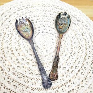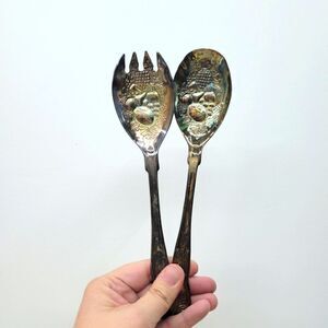 Lovely set of Vintage MCM Silver Plated Salad Fork and Spoon Servers (untested)