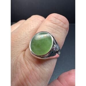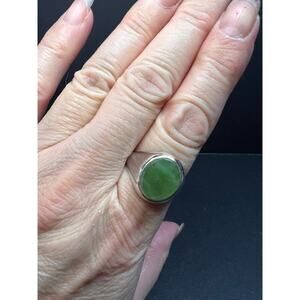 Vintage MCM Sterling Silver Nephrite Jade Ring – Size 10
