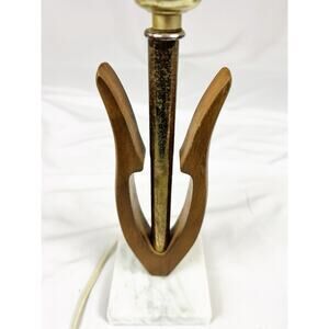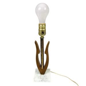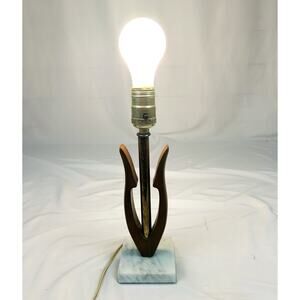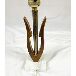 Vintage MCM Teak Tulip Marble Base Desk Lamp Table 11.75”