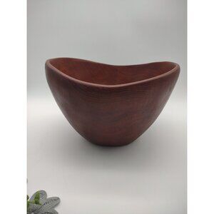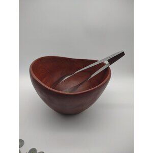 Vintage MCM Teak Wood hand Turned Salad Serving Bowl, with Wood & Steel Tongs.