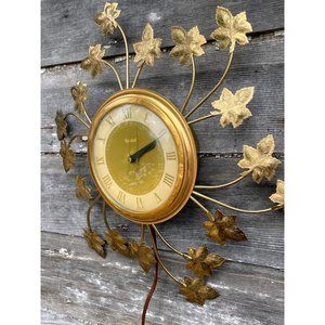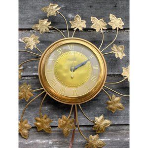 Vintage MCM United Starburst Ivy Leaves Electric wall clock Gold