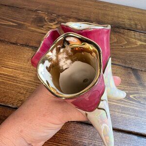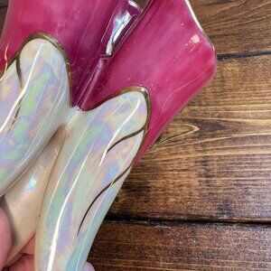 Vintage Pink Fuchsia Gold Lusterware Tricorn Vase Mid Century Modern MCM