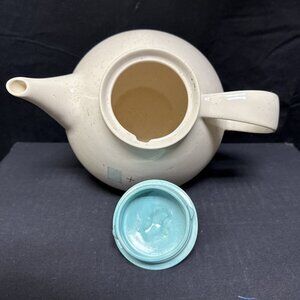 This Mid-Century Modern teapot from Vernonware's "Heavenly Days" collection offers a blend of functionality and style. Crafted in the USA, it comfortably holds up to five cups. Its unique blue and white color scheme adds a touch of elegance to any kitchen setting.