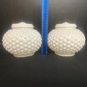Vintage MCM White Hobnail Milk Glass Globe Lamp Shades Light Covers - Set of 2 50's - 60"s