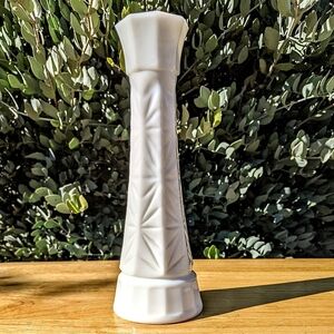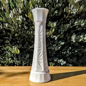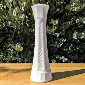 Vintage MCM White Milk Glass Starburst Bud Vase