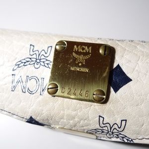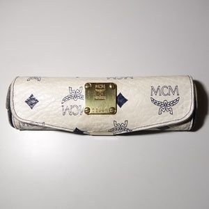 Vintage MCM white monogram visetos coated canvas eyeglasses case.