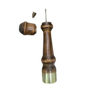 Vintage MCM Wooden Salt & Pepper Shakers Brass Accents Mid-Century Kitchenware
