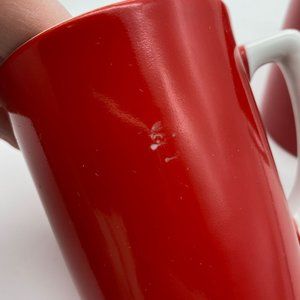 One cup has a couple of scratches to the surface, Coffee pot has the tiniest flea bit near the lid, see photos. Very hard to see.