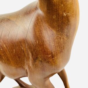 Good Preowned Vintage Condition from a Smoke Free Home! Due to the vintage nature, this piece may contain flaws such as fading, stains, cracks, crazing, scratches, wear, or chips. There is a repair on the left ear. Also, due to this being handmade, there are imperfections in the wood. Due to the many variations in monitors and browsers, the color of products may appear different on different monitors. Please check pictures and measurements carefully and ask questions before purchase.