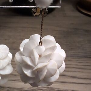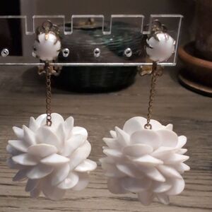 Vintage MCM Elegant White Floral Petal Ball Clip On Drop Earrings