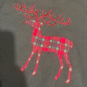 Vintage M&C SPORTSWEAR Christmas Applique Plaid Reindeer Ugly Crew Sweatshirt M