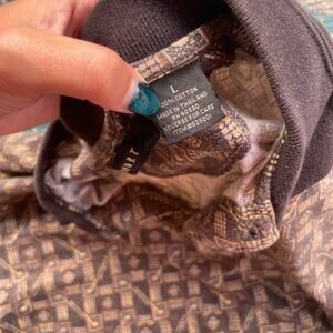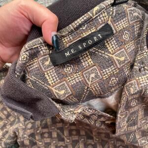 Vintage M.E. Sport Golf Polo Shirt Brown Beige Geometric Pattern - Size L