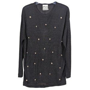 Vintage MEET ME IN MIAMI long sleeve black with silver glitter sweater Beads M/L