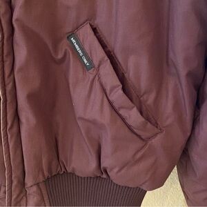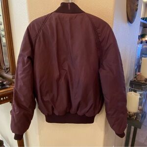 Pre-owned in great condition with normal wear. There are some light stains and zipper is missing some threads as shown in pictures but it’s still functional. Vintage reversible maroon and beige zipped bomber jacket. Made in Korea. Can be unisex. Fits like a size small to medium. Please check measurements. Comes from smoke and pet free home.