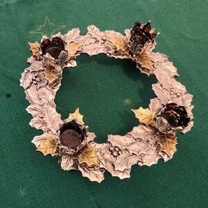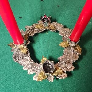 Vintage Metzke pewter with gold accents advent wreath candle holder. Some wax residue left behind. About a 6" diameter. Smoke-free home. Goldendoodle friendly.