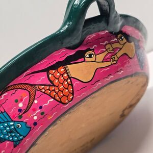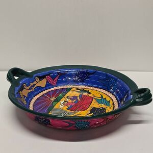 Vintage MEXICAN Ixtapa Terracotta Pottery Folk Art Hand Painted Large Bowl