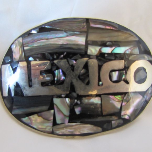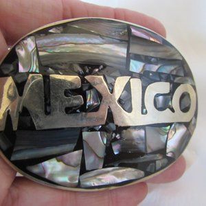 Vintage MEXICO Alpaca Silver Abalone Belt Buckle