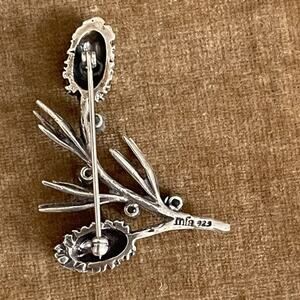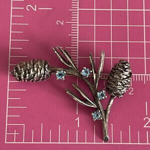 Vintage MFA Museum of Fine Arts Sterling Silver Pine Cone Bough Blue Pin Brooch