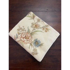 Vintage MH JC Penney Cottage Bohemian Floral Bath Towel Made In USA Ivory 24x42