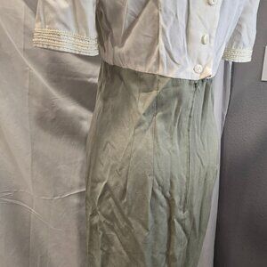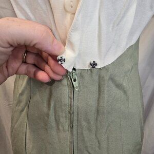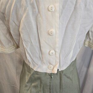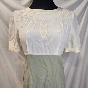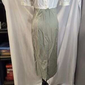 Vintage M.H.M Melissa Harper Dress Size Medium Green & Ivory Rayon & Poly