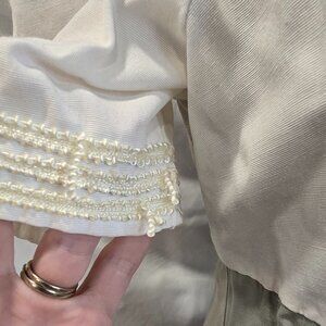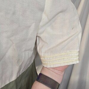 *size based off measurements, some small dirt marks. And small stain on sleeve*