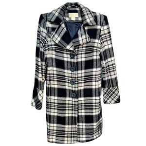 Vintage MICHAEL KORS Wool Plaid Winter Coat Black White Size 8