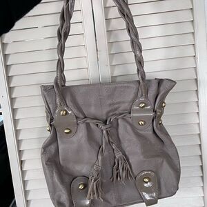 Vintage MICHAEL ROME Genuine Leather Handbag, Made In Italy, Braided Straps- taupe