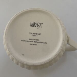 FEATURES: Vintage; oven to table; beautiful; inside of the mug is sage colored.