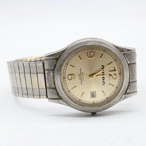 Vintage MILAN Watch Mens Silver Tone Stainless Steel Classic Gold Quartz Dial