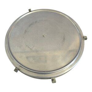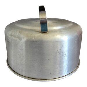 This is a vintage MIRRO aluminum cake carrier / saver, model 2002KM. This piece consists of the base and the lid. There is a lever on the base that will lock the lid into place, allowing you to safely carry your cake by just the handle on top. You will be able to safely place any cake on the base that is less than 10" in diameter without the lid rubbing the sides. The locking mechanism is in great working order and the lid fits snug. The overall exterior dimensions are about 11.5" in diameter and 9" tall including the handle. Please note, this piece was in storage and has some issues. There are some light dents in the lid and the handle is slightly skewed to one side. The final photo also shows a close up of a crack in the under side of the plastic handle. None of these issues affect the use of this item, but I like to be transparent . Please zoom in on all photos for full conditioning details.