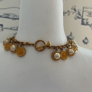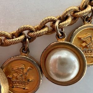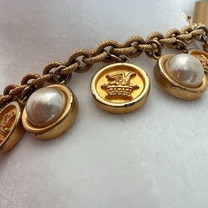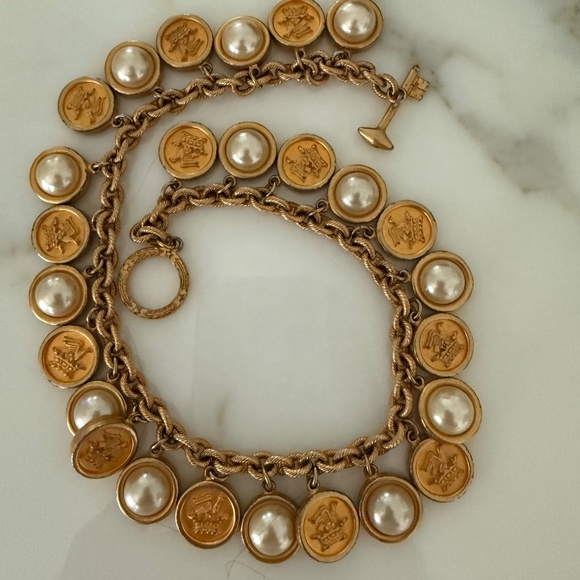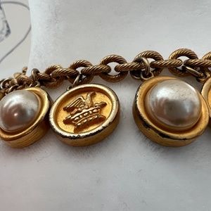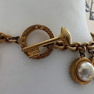 Vintage MISH New York 1980’s Gold Plated Multi Charm Pearl Chain Collar Necklace