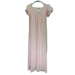 Vintage MISS ELAINE Pink Flutter Sleeve Full Length Nightgown MEDIUM READ USA