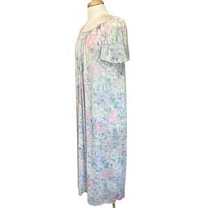 Vintage MISS ELAINE Whimsy Floral Nylon Maxi Nightgown Women's Small USA
