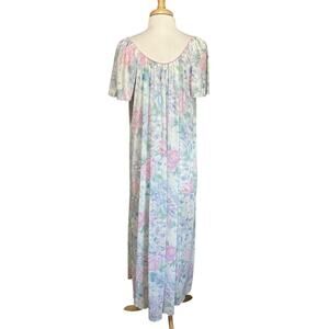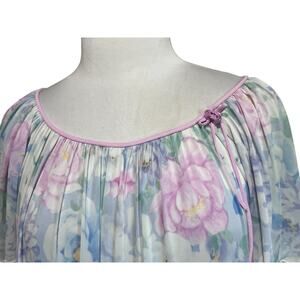 Vintage MISS ELAINE Whimsy Floral Nylon Maxi Nightgown Women's Small USA Blue