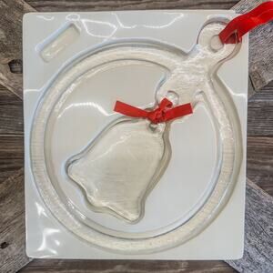 Vintage MJ Designs, Hanging Ornament Heavy Glass Ring Encircling Bell w/ Box