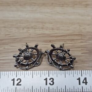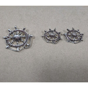 Vintage "MJ" Marie Jennifer Nautical Ship Wheel Rope Brooch Pendant Earrings
