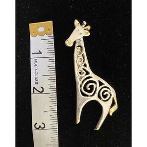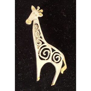Vintage MJ silver gold tone Giraffe Metal Brooch Pin