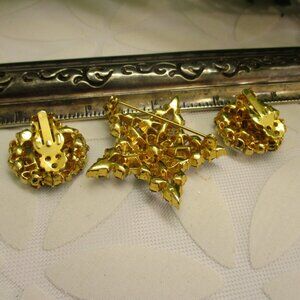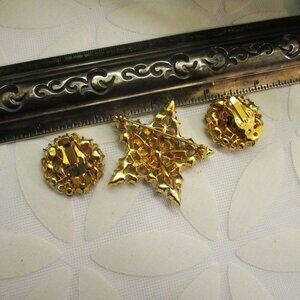 Outstanding, Vintage, Crystal Rhinestone, Gold Plated, Star and Moon Brooch Earrings Set by MJENT**.