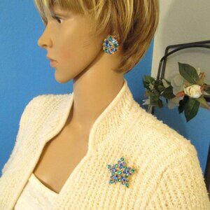 A breathtaking and loving gift for her, for that multi-color wedding, or to add to your Vintage Jewelry, Crystal Rhinestone Jewelry, Brooch Clip Earrings Set, Designer Jewelry Set, Shades of Blue Crystal Rhinestone Brooch Earrings, Celestial Brooch Earrings, Moon Star Rhinestone Jewelry, Statement Jewelry Set, or MJENT Rhinestone Gold Brooch Earrings wardrobe.