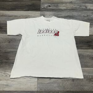 Vintage MLB Cleveland Indians White Red XL Crew Neck Embroidered Logo T-Shirt
