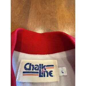 Vintage MLB St. Louis Cardinals 80s/90s men’s vintage jacket size large. It’s a men’s size large. The only Floyd has is a very minor stain by the color area. It is nothing terrible and barely notice all but I wanted to make you aware. Great vintage jacket. Ideal for the Cardinals fan. Smoke-free and clean home. No holes or rips.