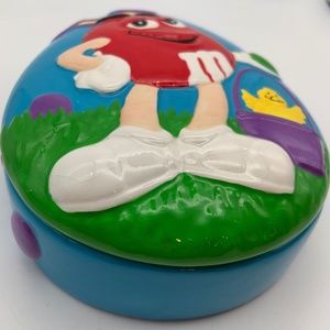 Vintage M&M Easter Red M&M Ceramic Easter Egg Shaped Dish with Lid