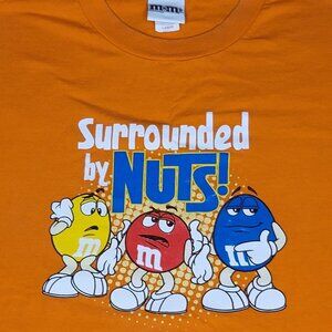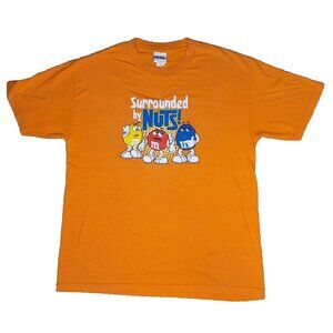 Vintage M&Ms Mens T Shirt Sz L Orange Promo Graphic "Surrounded By Nuts" Gift