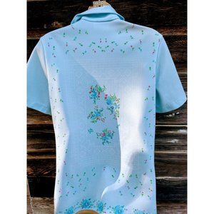 Vintage MOD 1970s Smartique Hippy BlueFloral Ladies Shirt