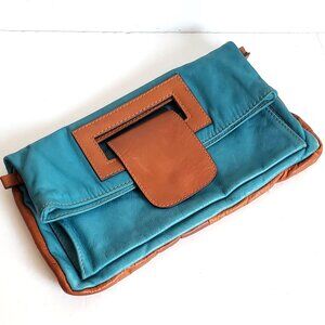 Vintage MODA in ITALIA Convertible 3in1 Leather Clutch Handbag Turquoise Cognac