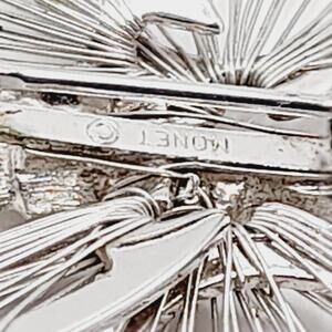 This brooch is part of a series of Monet openwork insect releases, and the silver-tone (rhodium plated) versions are notably harder to find than the gold-tone examples. Monet’s use of rhodium plating provides a bright, reflective silver finish that resists tarnish and elevates the overall design.