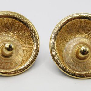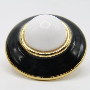 Vintage MONET Button Earrings Black White Enamel Gold Tone Eye Balls
