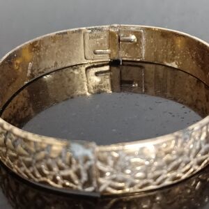 Vintage MONET etched gold bangle bracelet, measures 7.75"