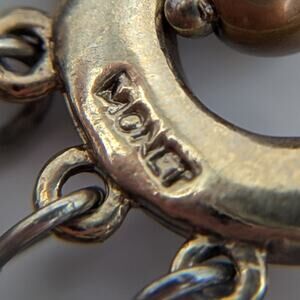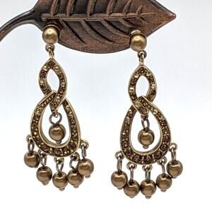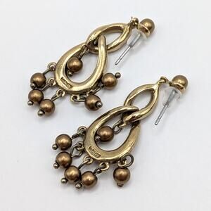 Vintage MONET Faux Pearl Rhinestone Chandelier Dangle Drop Earrings Bronze Tone