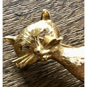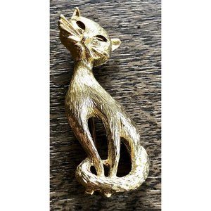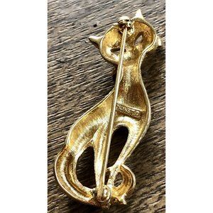 Vintage MONET Gold Retro CAT Brooch PIN Siamese Kitty Mint Condition signed